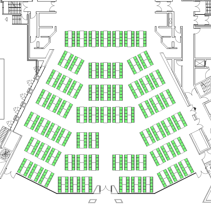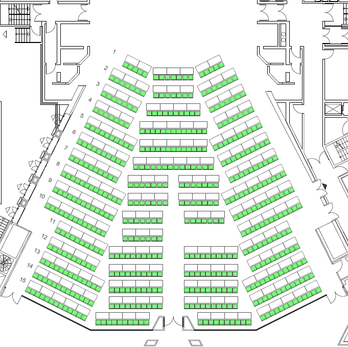 Die Reihenbestuhlung ist die Standard-Bestuhlungsvariante und ist in der Raummiete erhalten. Hier finden Sie die Raumpläne der Bestuhlungsvarianten zur Ansicht und zum Download als pdf.