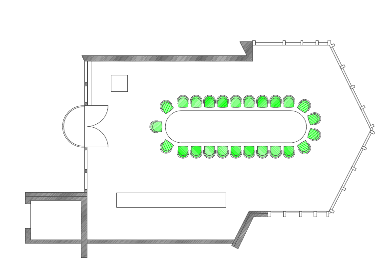 Im Galeriesaal ist ein großer ovaler Tisch installiert. Die Bankett-Bestuhlung ist somit als Standard in der Raummiete erhalten. Andere Bestuhlungsvarianten sind nicht möglich. Hier finden Sie den Raumplan zur Ansicht und zum Download als pdf.