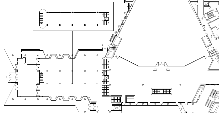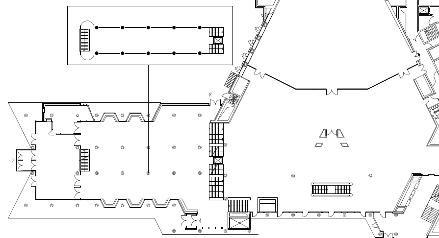 Das untere Foyer schließt auf 400 m² an die Eingangshalle an, dort befindet sich der mobile Garderobenbereich, dieser Bereich ist nach Bedarf z.B. als Tagungsbüro nutzbar.