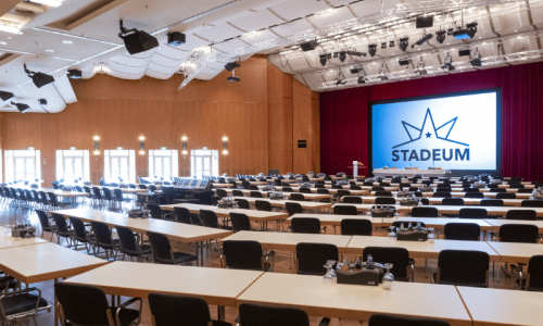 Das Foyer des STADEUM bietet auf mehreren Ebenen vielseitige Möglichkeiten für Ihre Events.