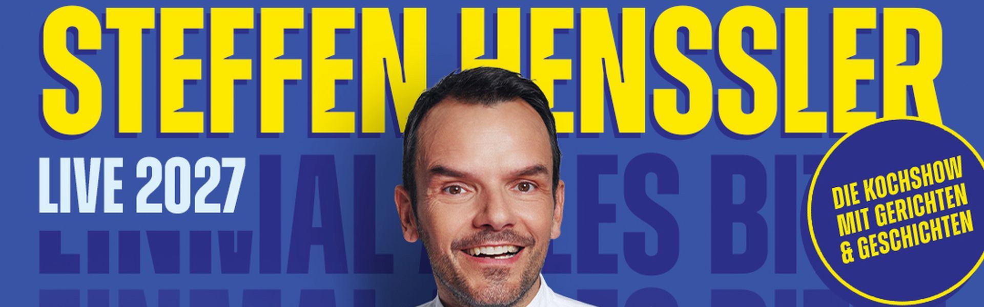 Nach seiner erfolgreichen Live-Kochshow „Hensslers Schnelle Nummer“ 2024 geht der TV-Koch, Autor und Gastronom Steffen Henssler wieder auf Deutschlandtour: Mit seinem neuen Programm „Einmal alles, bitte!“ ist er am 03. April 2027 live im STADEUM zu erleben. Erneut kann sich das Publikum auf leckere Rezepte und Geschichten aus der TV-Welt freuen.