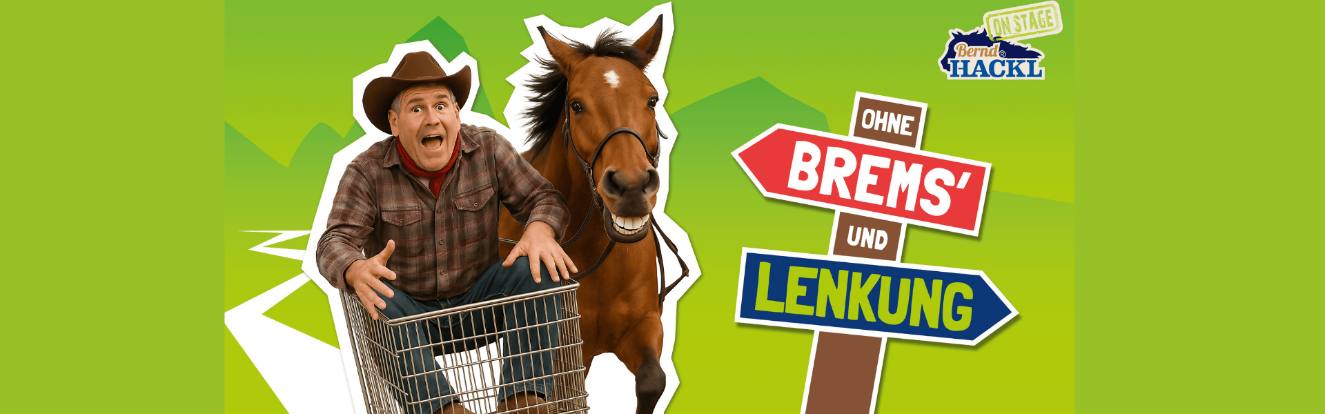 Nach dem erfolgreichen Auftakt seiner Comedy-Tour kommt der bekannte Pferdetrainer und VOX TV-Star der Serie „Die Pferdeprofis“ Bernd Hackl mit seinem neuen Bühnenprogramm zurück, nicht im Sattel, sondern auf der Bühne und das noch wilder, noch schräger und garantiert bauchmuskelstrapazierend! Unter dem Titel „Ohne Brems’ und Lenkung“ präsentiert er sein brandneues Programm für alle Pferdeliebhaber und das mit Vollgas!