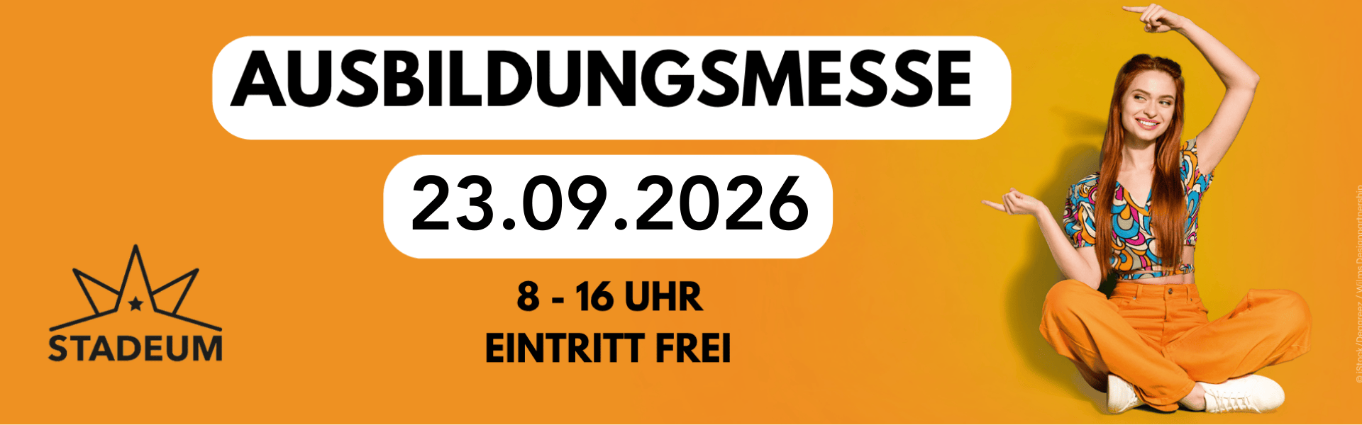 Bereits seit über 20 Jahren bietet die Ausbildungsmesse im STADEUM für Schulabgänger*innen und allen anderen Interessierten den perfekten Rund-um-Blick für die Berufsorientierung. Über 100 Betriebe haben hier die Möglichkeit, ihre Ausbildungsberufe und Studiengänge vorzustellen sowie potentielle Auszubildende kennenzulernen. Das Angebot der Ausbildungsmesse ist vielfältig und hilft Schüler*innen bei der wichtigen Frage nach der Berufswahl.